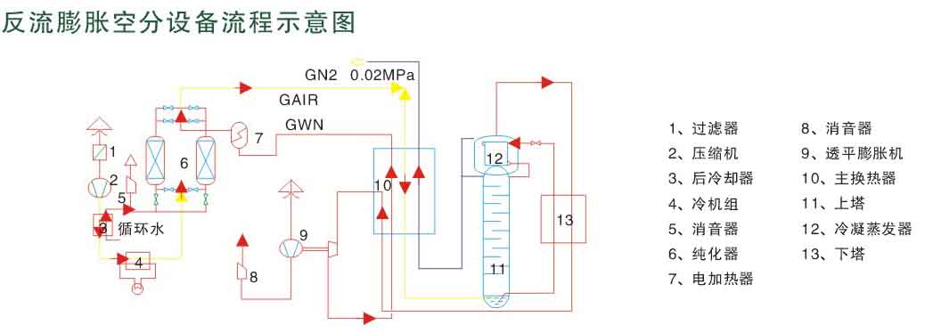 高純氮空分設(shè)備采用分子篩吸附、氣體膨脹機(jī)膨脹制冷、單塔精餾原理。可根據(jù)用戶需要不同形態(tài)(氣態(tài)。液態(tài))氮?dú)獾氖褂茫筛鶕?jù)用戶需要不同壓力等級氮?dú)舛ㄖ疲龅侥芎淖畹停撜裆a(chǎn)規(guī)模從10Nm3/h到10000Nm3/h(氮?dú)猱a(chǎn)量)均可按照用戶需求特殊定制。